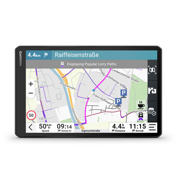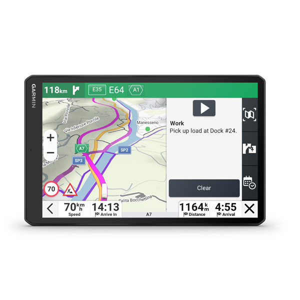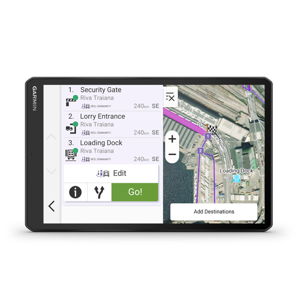 Satelitný navigačný systém s obrovským 10" displejom dezl™ LGV1020 ponúka dôležité komunitné funkcie dezl, ktoré uľahčujú život na cestách profesionálnym vodičom nákladných vozidiel. Získajte prehľad o parkoviskách, nakladacích dokoch a preferovaných miestach pre nákladné vozidlá na základe hodnotení od ostatných vodičov.