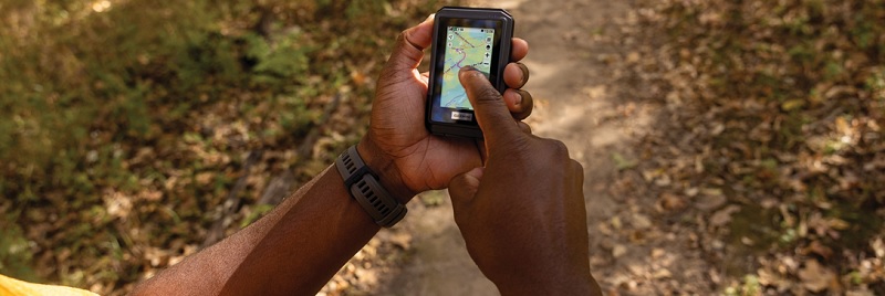 Kompaktný navigátor etrex Touch je vybavený integrovaným 3" dotykovým displejom, ktorý je krytý chemicky tvrdeným sklíčkom s mimoriadnou odolnosťou proti poškriabaniu. Vhodný aj pre ovládanie v rukaviciach, dobre čitateľný a ľahko použiteľný. Kliknutím, príblížením a posunom prsta po mapách môžete sledovať svoju trasu.