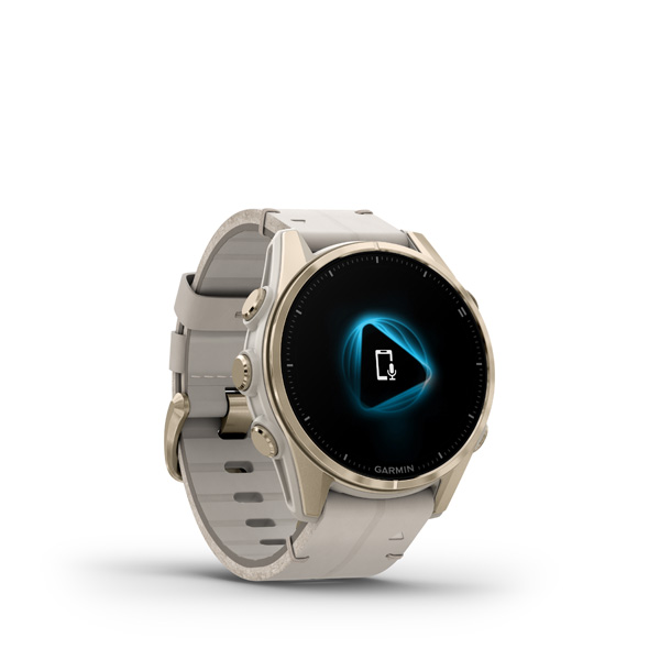 fenix 8 - 43mm, AMOLED, Sapphire, Soft Gold Stainless Steel, Fog Gray Leather band