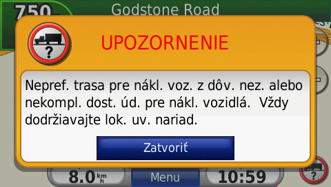 | Automatický prepočet trasy (autorouting): | Áno |