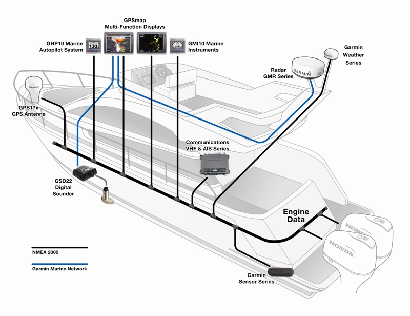 Umožňuje plnohodnotné využitie potenciálu zariadenia po pripojení požadovanej výbavy (GPS, sonar, radar). Po pripojení GPSmap 4008 do siete, umožňuje výbava zariadenia zdieľať zobrazované informácie aj na iných zariadeniach (Garmin) respektíve zdielať informácie o pripojených snímačoch. Viac o dostupnom voliteľnom príslušenstve nájdete na záložke Súvisiace produkty.