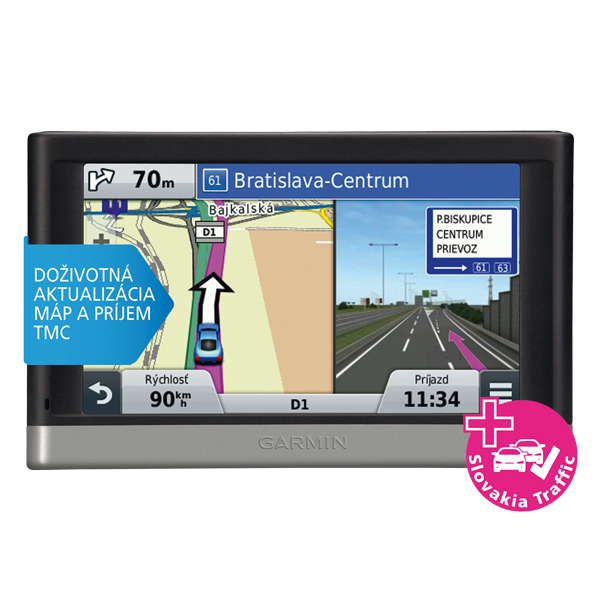Komplexná 5,0" navigácia s detailnými mapami Európy, bezplatnou a doživotnou aktualizáciou máp a prijímom prémiových dopravných správ RDS-TMC aj na Slovensku.