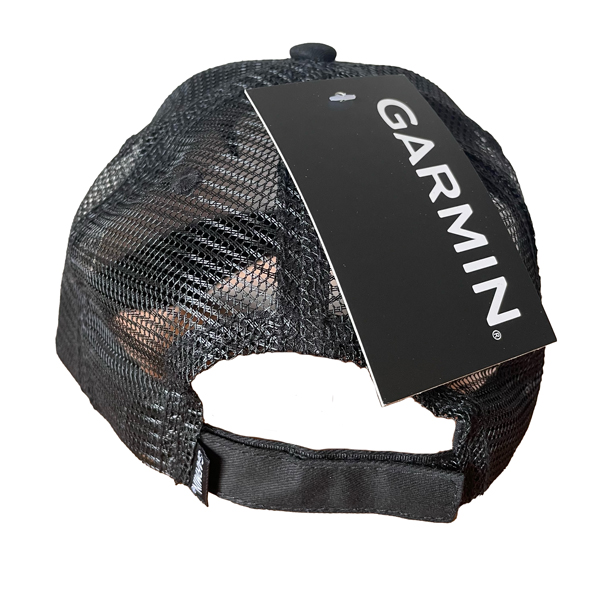 Čierna šiltovka s logom GARMIN s odvetranou zadnou časťou, nastaviteľná v zadnej časti.