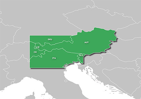 Podrobná turistická mapa južnej oblasti Álp Nemecka, Rakúska, severného Talianska, západného Slovinska a východného Švajčiarska v mierke 1:25,000. Hlavné prednosti