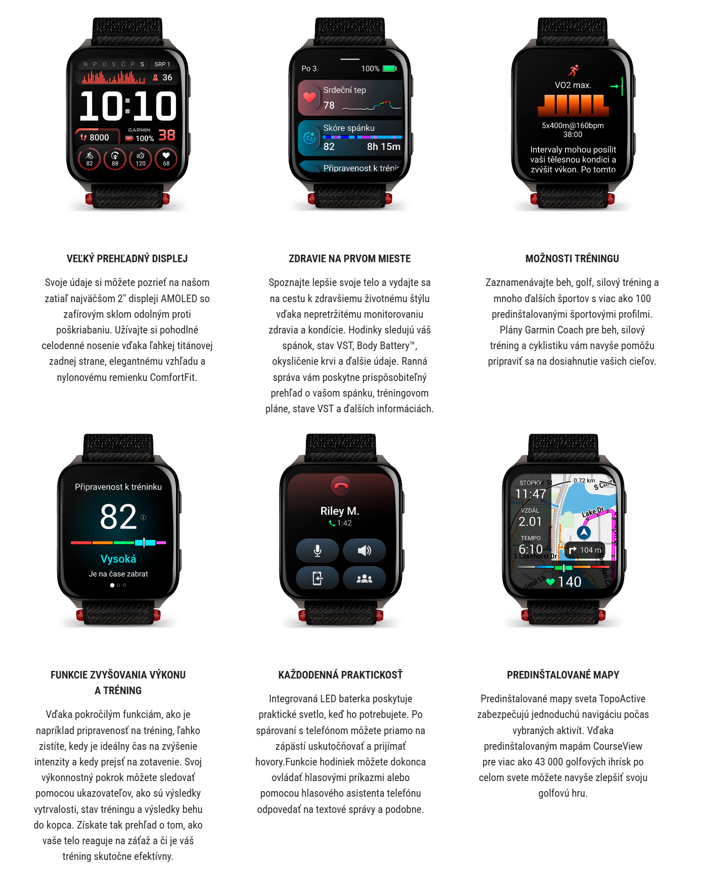 Zariadenia na sledovanie aktivity od spoločnosti Garmin sú nástroje určené na poskytovanie informácií na zachovanie aktívneho a zdravého životného štýlu. Zariadenia na sledovanie aktivity od spoločnosti Garmin fungujú pomocou snímačov, ktoré sledujú váš pohyb. Údaje a informácie poskytované týmito zariadeniami sú určené na presné sledovanie vašej aktivity, nemusia však byť presné na 100% vrátane údajov o krokoch, spánku, vzdialenosti a kalóriách. Zariadenia na sledovanie aktivity od spoločnosti Garmin nie sú medicínske prístroje a údaje nimi poskytované nie sú určené na medicínske účely ani diagnostiku, ošetrenie, liečbu alebo prevenciu akýchkoľvek zdravotných problémov. Spoločnosť Garmin odporúča poradiť sa so svojím lekárom pred tým, ako sa začnete venovať nejakej športovej činnosti.