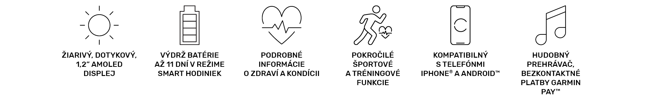 Zariadenia na sledovanie aktivity od spoločnosti Garmin sú nástroje určené na poskytovanie informácií na zachovanie aktívneho a zdravého životného štýlu. Zariadenia na sledovanie aktivity od spoločnosti Garmin fungujú pomocou snímačov, ktoré sledujú váš pohyb. Údaje a informácie poskytované týmito zariadeniami sú určené na presné sledovanie vašej aktivity, nemusia však byť presné na 100% vrátane údajov o krokoch, spánku, vzdialenosti a kalóriách. Zariadenia na sledovanie aktivity od spoločnosti Garmin nie sú medicínske prístroje a údaje nimi poskytované nie sú určené na medicínske účely ani diagnostiku, ošetrenie, liečbu alebo prevenciu akýchkoľvek zdravotných problémov. Spoločnosť Garmin odporúča poradiť sa so svojím lekárom pred tým, ako sa začnete venovať nejakej športovej činnosti.
