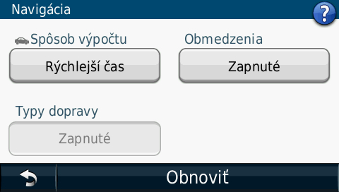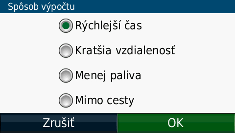 | Nastavenie výpočtu trasy: | Áno |