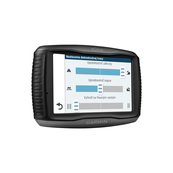 V režime výpočtu "dobrodružná trasa", viete nastaviť ďalšie možnosti ako kľukatosť, kopcovitosť a vyhnutie sa hlavným cestám na veľkom 5,0" dotykovom displeji, ktorý viete ovládať v rukaviciach a ktorý viete pouziť buď zvyslo, alebo pozdĺžne. Transflektívna obrazovka redukuje odlesky a to robí tento displej ľahko čitateľný dokonca aj na slnku.