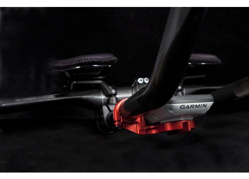 Prepracovaný hliníkový (vysunutý) držiak na držiak pre Garmin, ktorý je špeciálne určený na časovkárske nástavce bicykla pre sériu cyklpočítačov Garmin Edge®. Elegantný dizajn a vyhotovenie je optimazované pre ideálne použitie produktov Garmin Edge® Touring, 200, 500, 510, 800 a 810. vysunutý držiak pre Garmin na časovkárske nástavce Držiak je kompatibilný aj pre použitie s Garmin Forerunner® 310XT (podmienkou je použitie montážneho kitu - Sada na bicykel / beh ).