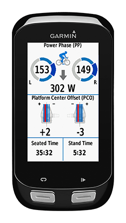 CYCLING DYNAMICS - zobrazenie kompletnej výkonnostnej metriky na kompatibilnom Edge*, ktorý poskytuje grafický výstup s informáciami o čase strávenom v sedle/postoji, fázach výkonu, silových fázach, stredovom vyvážení plochy pedálov (PCO), uhly silovej fázy a pod.