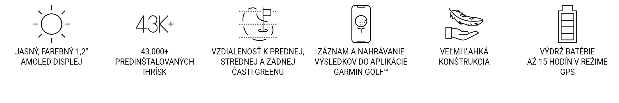 Jasný 1,2-palcový AMOLED dotykový displej zobrazí kľúčové vzdialenosti na greene, prekážky, zalomenia na 43 000+ ihriskách.