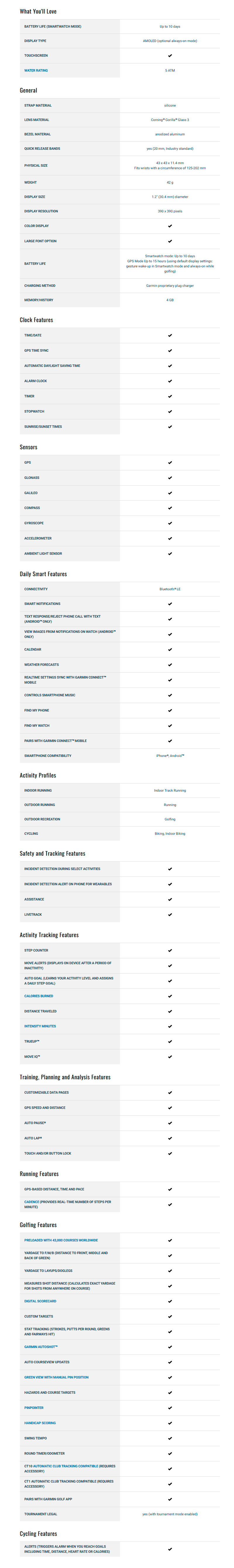 Zariadenia na sledovanie aktivity od spoločnosti Garmin sú nástroje určené na poskytovanie informácií na zachovanie aktívneho a zdravého životného štýlu. Zariadenia na sledovanie aktivity od spoločnosti Garmin fungujú pomocou snímačov, ktoré sledujú váš pohyb. Údaje a informácie poskytované týmito zariadeniami sú určené na presné sledovanie vašej aktivity, nemusia však byť presné na 100% vrátane údajov o krokoch, spánku, vzdialenosti a kalóriách. Zariadenia na sledovanie aktivity od spoločnosti Garmin nie sú medicínske prístroje a údaje nimi poskytované nie sú určené na medicínske účely ani diagnostiku, ošetrenie, liečbu alebo prevenciu akýchkoľvek zdravotných problémov. Spoločnosť Garmin odporúča poradiť sa so svojím lekárom pred tým, ako sa začnete venovať nejakej športovej činnosti.
