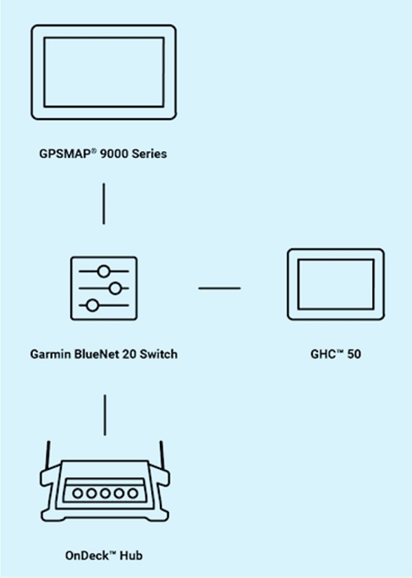 BlueNet 20 switch pre zvýšenie počtu dostupných portov v rámci existujúcej námornej siete Garmin BlueNet™.