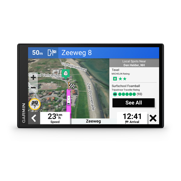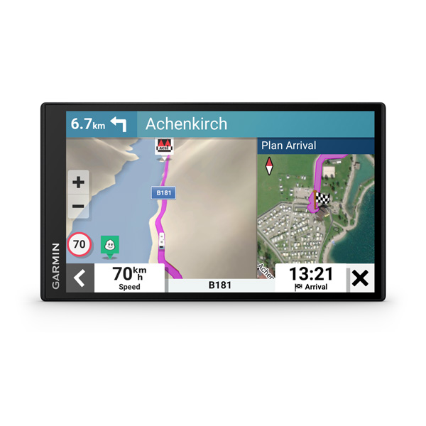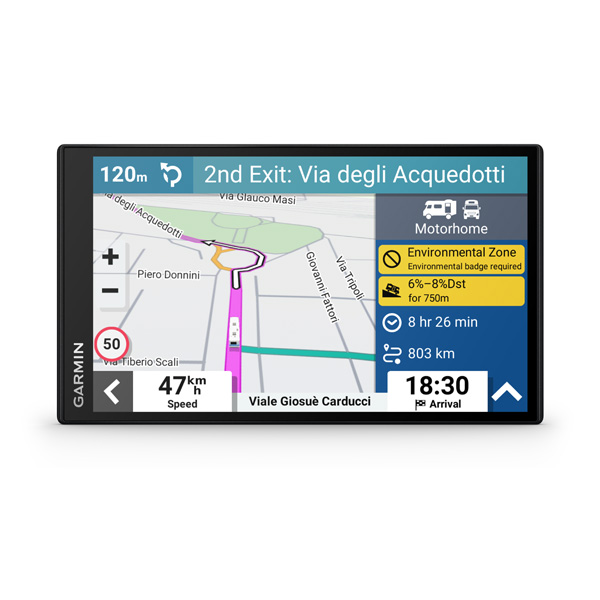 Garmin Camper 795 s veľkým displejom a výpočtom trasy s ohľadom na veľkosť a hmotnosť vášho karavanu, vhodná pre navigovanie obytných vozidiel a obytných prívesov. Jej navigačné a doplnkové funkcie sú prispôsobené práve pre vodičov a posádku týchto vozidel.