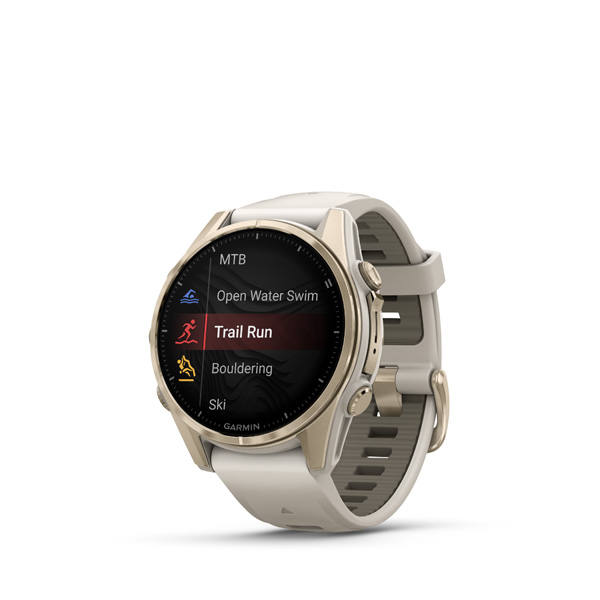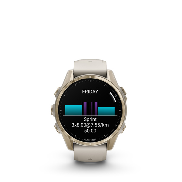 fenix 8 - 43mm, AMOLED, Sapphire, Soft Gold, Fog Gray/Dark Sandstone band