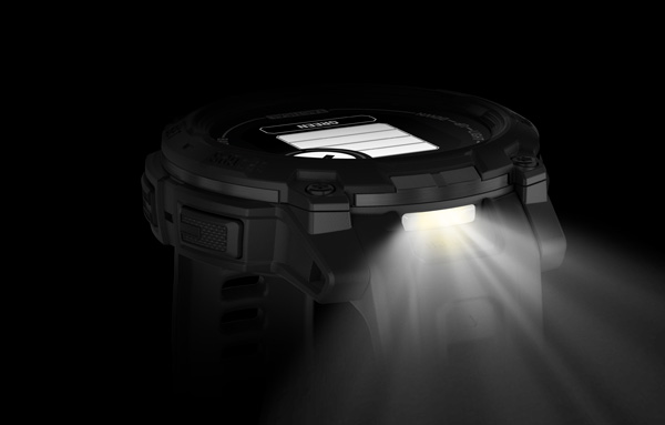 V púzdre hodiniek sa nachádza výkonná LED baterka s nastaviteľným jasom v niekoľkých úrovniach (aj s režimom záblesku) a bielym alebo zeleným svetlom.