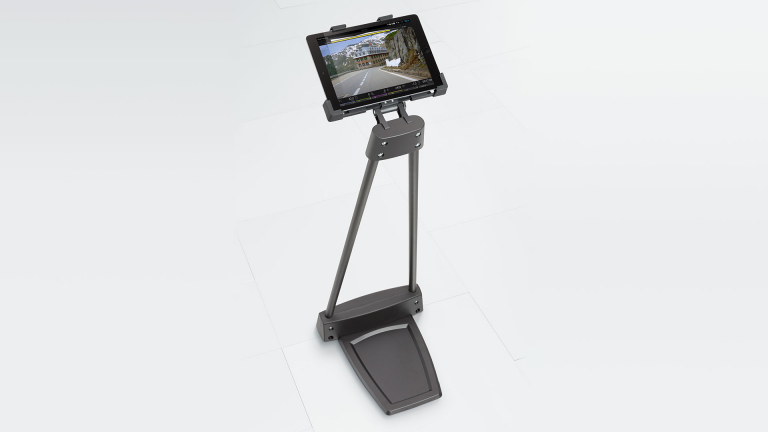 Jednoduchý nastaviteľný stojan s držiakom na tablet pre maximálne pohodlie počas tréningu. Držiak je vhodný pre rôzne veľkosti tabletov - s vonkajšími rozmermi - od 182 do 267 mm/od 112 do 197 mm, pri maximálnej hrúbke 13mm.