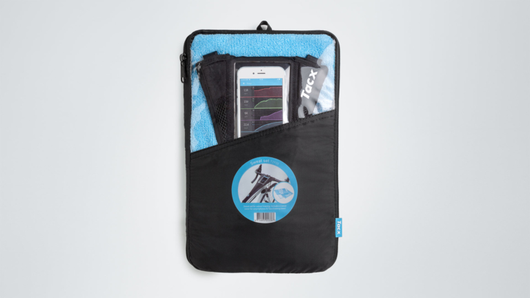Jednoduché a praktické TACX potítko zo špeciálneho materiálu obsorbuje pot a ochráni tak váš bicykel a podlahu. Toto prevedenie je doplnené o púzdro na smartfón s priehladnou fóliou na prednej strane + balení nájdete kvalitný tréningový uterák.