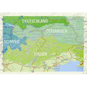 - 21 000 horských vrcholov s výškovými údajmi - 2 400 priesmykov a križovatiek s výškovými údajmi - 2 000 horských a záchytných chát s výškovými údajmi a zčasti aj telefónnymi číslami - viac než 700 horských dráh