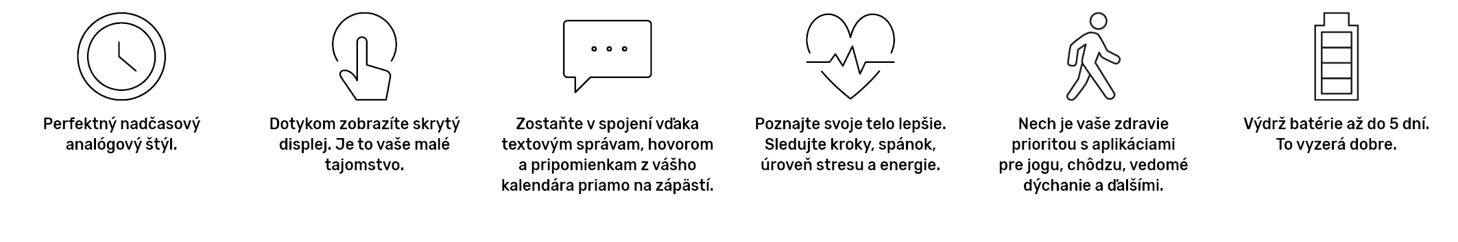 Tieto hybridné smart hodiny v sebe spájajú tradičný vzhľad analógových hodín so základnými smart funkciami, ktoré držia krok s vaším rušným životom.