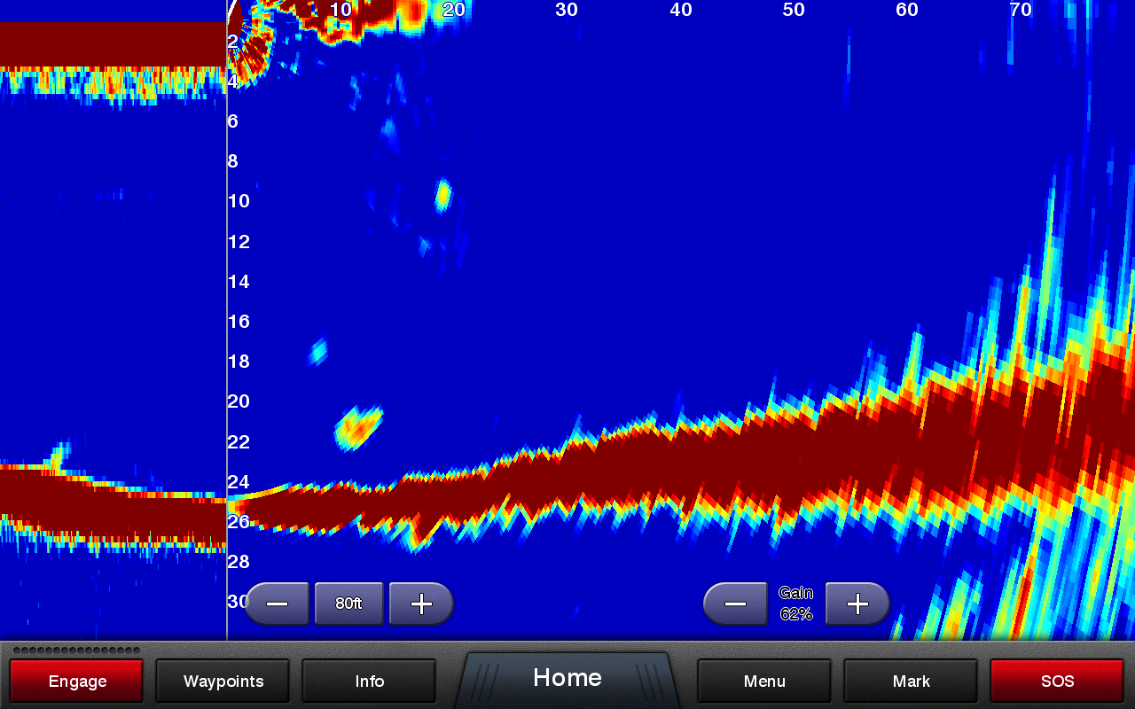 V režime LIVEVÜ DOWN získate priamy náhľad pod vodnú hladinou pod plavidlom až do hĺbky 90m so živým náhľadom v reálnom čase. V režime LIVEVÜ DOWN zobrazuje sonar v reálnom čase objekty a štruktúru dna pod plavidlom. Môžete dokonca sledovať, ako ryby reagujú na pohybujúcu sa návnadu.