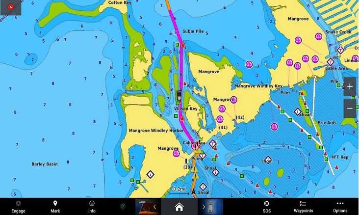 Ediícia Navionics+ >ponúka automatickú funkciu plánovanie pre výpočet trasy plavby po zadaní parametrov (max. ponor a pod.)*