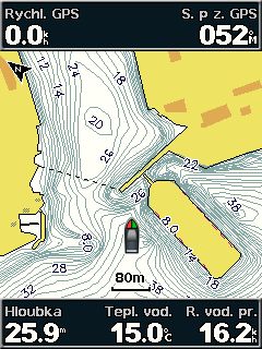 Novinkou je môžnosť farebného škálovania mapy v závislosti od nastavení podľa hĺbky vody. Máte k dispozícií až 10 rôznych hĺbkových rozsahov pre zobrazenie oblastí s minimálnou/maximálnou resp. požadovanou hĺbkou. Mapy tiež obsahujú hĺbkové vrtevnice s rozostupom od 30cm pre detailný náhľad štuktúry dna pod vodnou hladinou.