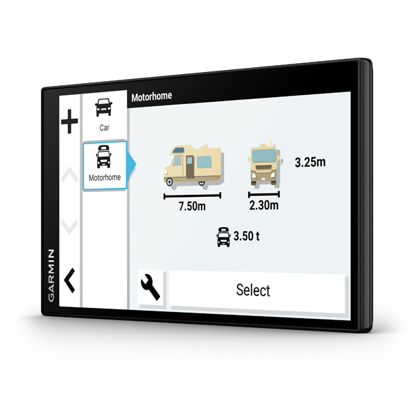 Garmin Camper 795 s veľkým displejom a výpočtom trasy s ohľadom na veľkosť a hmotnosť vášho karavanu, vhodná pre navigovanie obytných vozidiel a obytných prívesov. Jej navigačné a doplnkové funkcie sú prispôsobené práve pre vodičov a posádku týchto vozidel.
