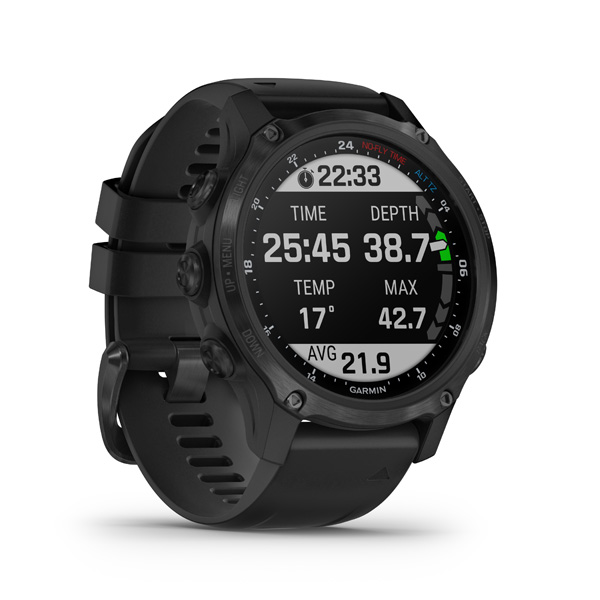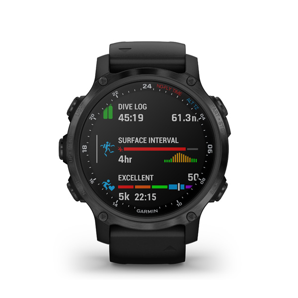 Toto je pokročilý potápačský počítač v dizajne hodiniek, ktorý je vybavený multišportovými tréningovými a inteligentnými funkciami. Ak chcete integráciu sledovania tlaku vo fľašiach, pozrite sa na model Descent Mk2i.