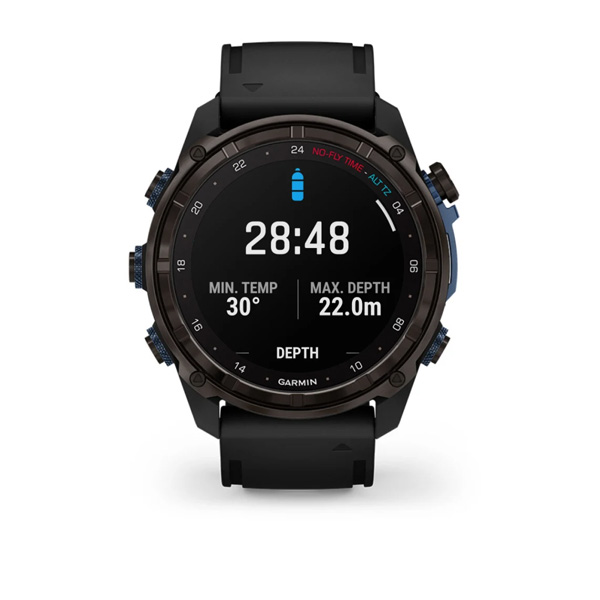 Hodinky sú navrhnuté na použitie v hĺbkach – majú jasný, farebný 1.4″ AMOLED displej, zafírové sklíčko, puzdro odolné až do hĺbky 200 metrov a vodotesné kovové indukčné tlačidlá.