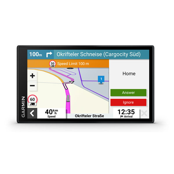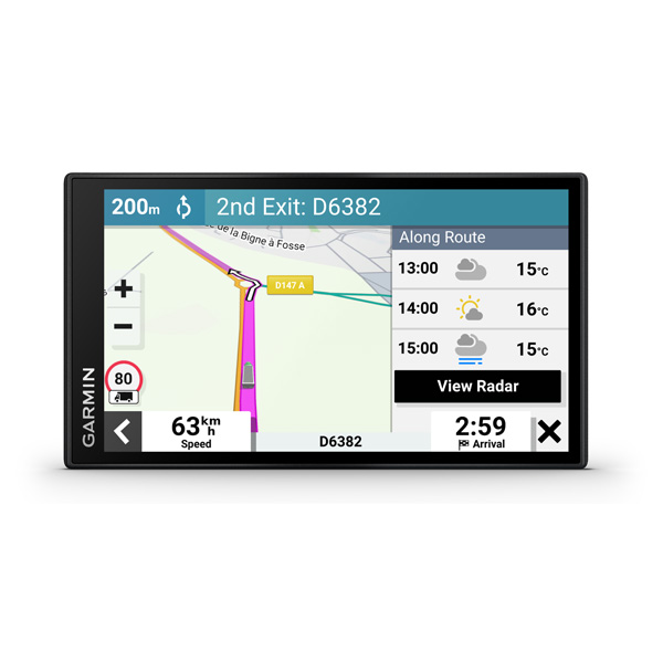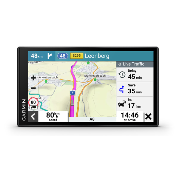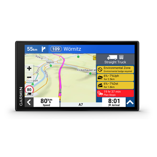 Táto 6″ navigácia ponúka výpočet vlastnej trasy podľa veľkosti a hmotnosti vášho nákladného vozidla, strategické odporúčanie pre tankovanie a prestávky a jednoduché plánovánie príjazdu.
