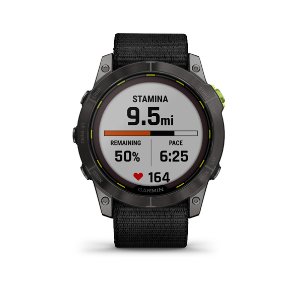 Enduro 2, Sapphire Solar, Carbon Gray DLC Titanium. Black UltraFit Nylon strap