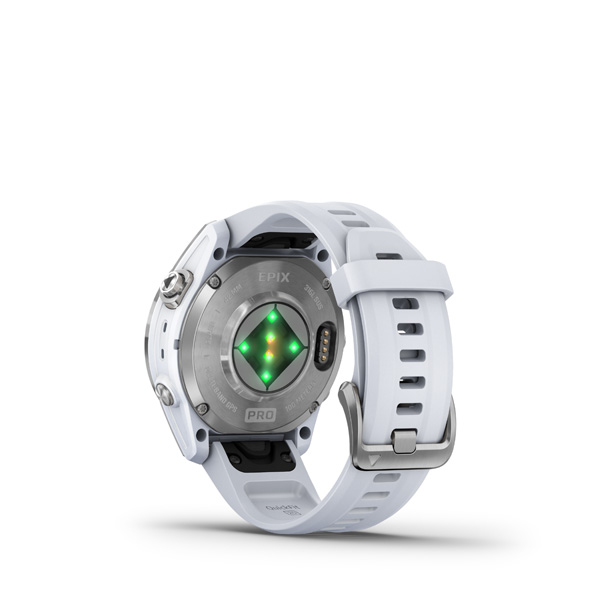 Optický snímač pulzu na zápästí Základný štandard výbavy série epix Pro (g2) ponúka celkom nový optický pulzomer (5. generácia) s podporou pokročilých meraní (variabilita pulzu) a podporou snímania pulzu aj pri plávaní, ktorý je doplnený o PULSE OX snímač pre meranie okysličenosti krvi.
