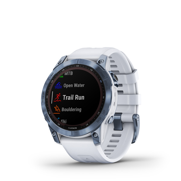 fenix 7 Sapphire Solar, Mineral Blue DLC Titanium, Whitestone Band