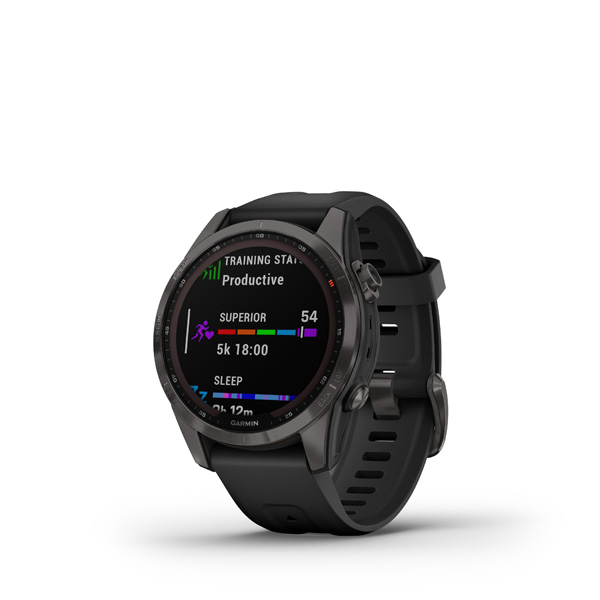 fenix 7S Sapphire Solar, Carbon Gray DLC Titanium, Black Band