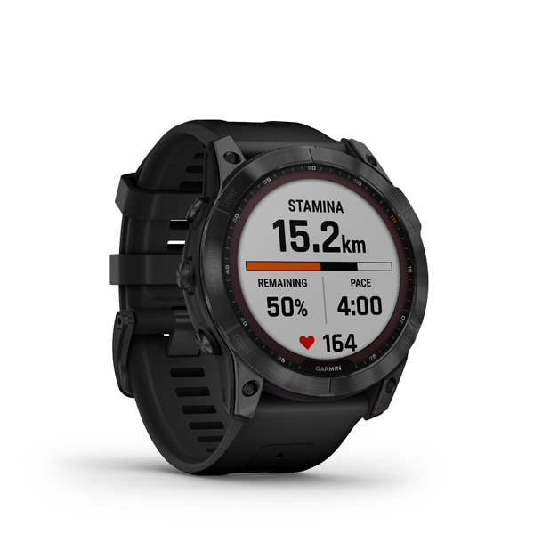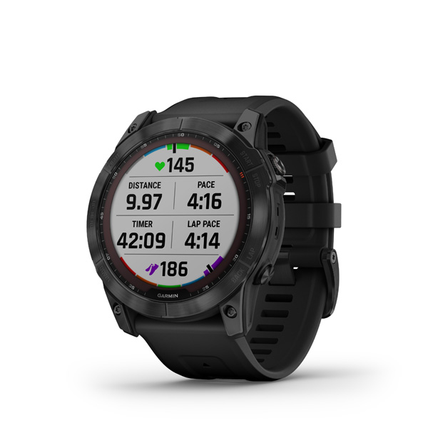 fenix 7X Sapphire Solar, Black DLC Titanium, Black Band