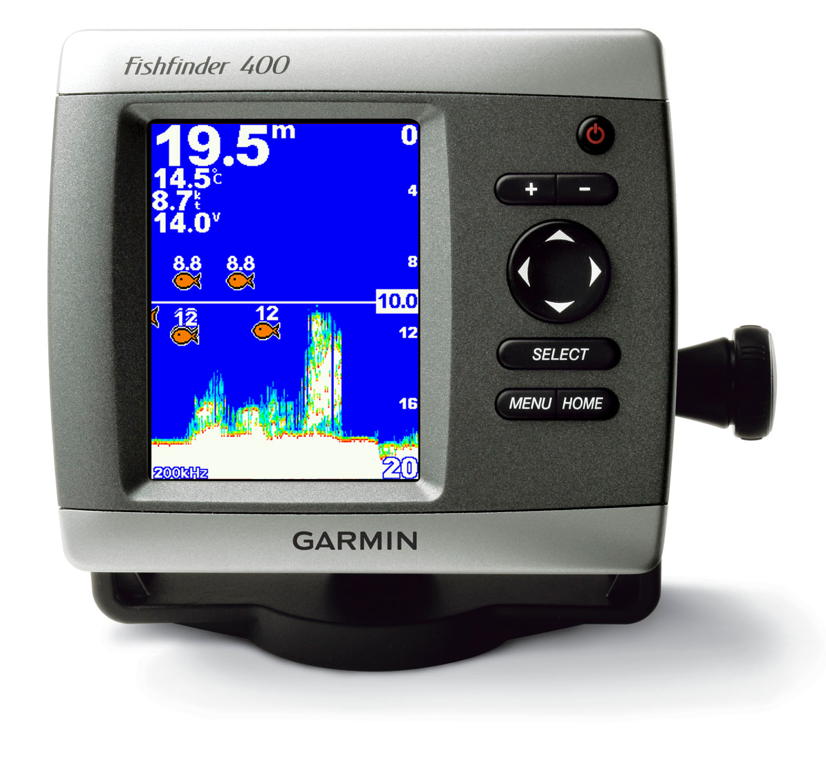 Najvýkonnejší samostatný sonar z ponuky série Fishfinder. Disponuje výkonom až 500 W (RMS) pre použitie v sladkých ale aj slaných vodách. Fishfinder 400C spája vysoký výkon a jednoduché užívateľské rozhranie, čo uľahčuje použitie v sladkých ale aj slaných vodách. Prístroj zobrazuje detaily vo vysokom rozlíšení prostredníctvom ultra-svetlého farebného displeja (QVGA) s uhlopriečkou 102 mm a rozlíšením 320 x 240 bodov.
