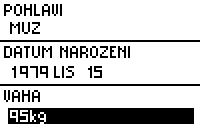 Základné zobrazované dáta: srdcová frekvencia (HRM), čas (stopky) + priemerné hodnoty, automatické okruhy, rýchlosť, vzdialenosť a ďalšie hodnoty.