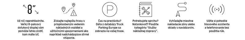 - Zobrazovanie obľúbených trás nákladných vozidiel.