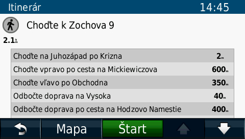 | Okamžitý náhľad na zvolenú trasu: | Nie |