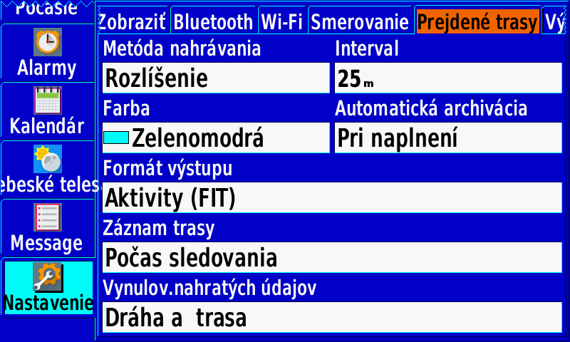 | Záznam trás/ciest: | Áno |