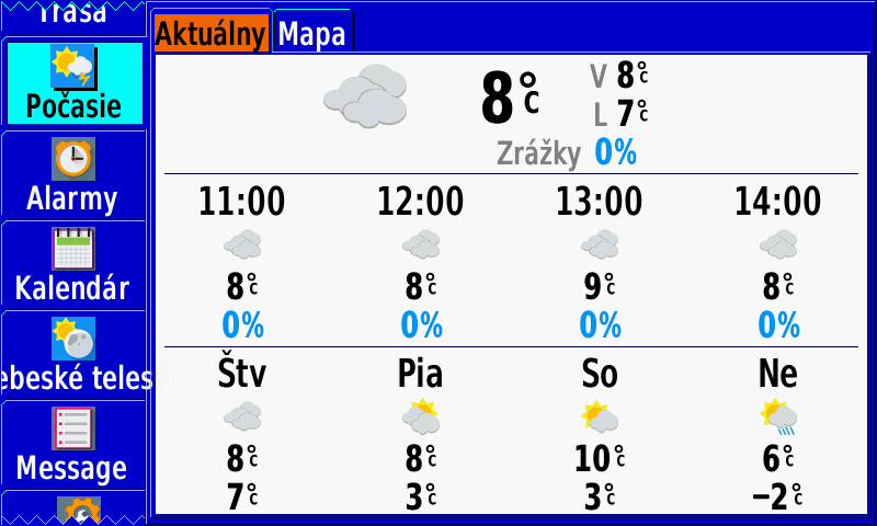 | Meranie na mape (odmeranie vzdialenosti ľubovoľného miesta na mape): | Áno |