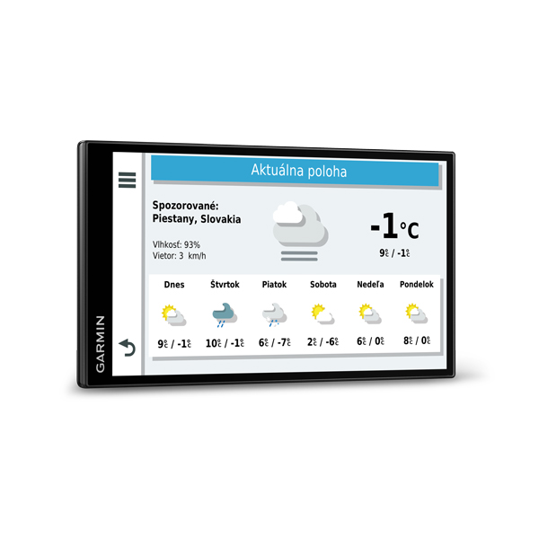Príjem aktuálnych dopravných správ a počasia cez pripojený kompatibilný smartfón s novou aplikáciou Garmin Drive™