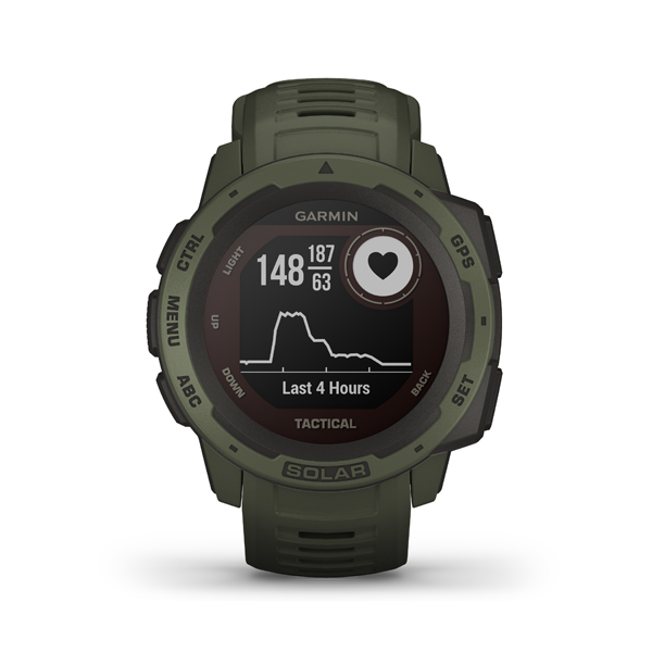 Solárne dobíjanie hodiniek pre mimoriadne predĺženie výdrže batérie pri vašich aktivitách, s mimoriadne odolným krycím sklíčkom Corning® Gorilla® Glass. Model Instinct Solar, Tactical rozširuje ponuku série > > Instinct o špecializovaný taktický model so zodpovedajúcou výbavou. Instinct Solar, Tactical navyše ponúka možnosť duálneho zobrazovania súradníc polohy (2 formáty) s podporou optimalizovaného podsvietenia displeja v režime nightvision (nočného videnia). Taktickú výbavu ďalej dopĺňa tzv. utajený stealth režim hodiniek. Po jeho aktivovaní sa deaktivuje bezdrôtová komunikácia, optický pulzomer a tiež sa automaticky upraví úroveň podsvietenia displeja. Pre zoskok s padákom je dostupná funkcia Jumpmaster, ktorá umožňuje optimálne sledovať prebieh letu podľa typu zoskoku.