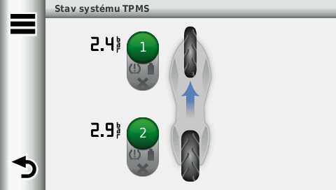 Bezdrôtové monitorovanie tlaku v pneumatikách s nastaviteľnými tlakovými upozorneniami a tlakové trendy a grafy. Ľahko sledovať tlak v pneumatikách Náš systém kontroly tlaku v pneumatikách (TPMS) vám umožní sledovať tlak v pneumatikách ľahko a pohodlne. Systém pracuje až so štyrmi (4) pneumatikami v akejkoľvek konfigurácii (nie je určený pre využitie v automobilovom priemysle). Jeden (TPMS) snímač je určený pre jednu pneumatiku (predáva sa samostatne, len pre kovový ventil). Informácie o snímači tlaku v pneumatikách Pripevnite snímač tlaku v pneumatikách ku každému kovovému ventilu, potom ho spárujte so svojím zumo® 390. Snímač tlaku v pneumatikách využíva bezdrôtovú ANT+ technológiu pre sprostredkovanie informácii o aktuálnom tlaku v pneumatikách, ktoré si viete pozrieť priamo na displeji svojho navigátora zumo® 390. Snímač umožňuje nastaviť prahové hodnoty tlakov. Ak nastanú zmeny tlaku v pneumatikách, na displeji sa zobrazí výstraha. Snímače spolu s navigátorom umožňujú sledovanie tlaku v pneumatikách v priebehu času s možnosťou zobrazenia na displeji navigátora v prehľadnom grafe. Snímače umožňujú detekovať podhustenie skôr, ako by mohol nastať väčší problém. Malý a chytrý Náš snímač je najmenší senzor tlaku v pneumatikách pre motocykle na trhu. Každý snímač je napájané jednou, vymeniteľnou batériou BR1225, ktorá môže pracovať až 18 mesiacov v závislosti na individuálnom použití. Pre zachovanie čo najväčšej životnosti batérie disponuje snímač režimom nízkej spotreby a "prebudí" sa až keď je detekovaný pohyb.