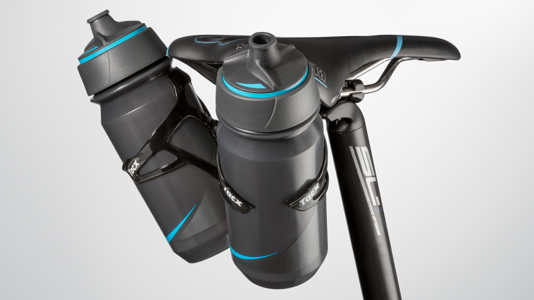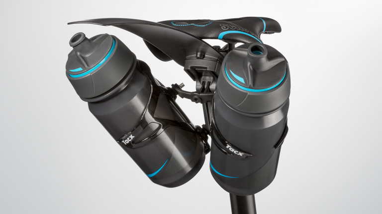Prepracovaný univerzálny držiak TACX pod sedlovku, na montáž jedného alebo dvoch cyklokošíkov* súčasne. Táto možnosť montáže cyklo-košíkov je kľúčová pre dosiahnutie ideálneho aerodynamického odporu pri časovkách alebo triathlone. Konštrukcia naviac umožňuje jednoduchú integráciu / kombináciu s plastovým blatníkom Tacx Mudguard.