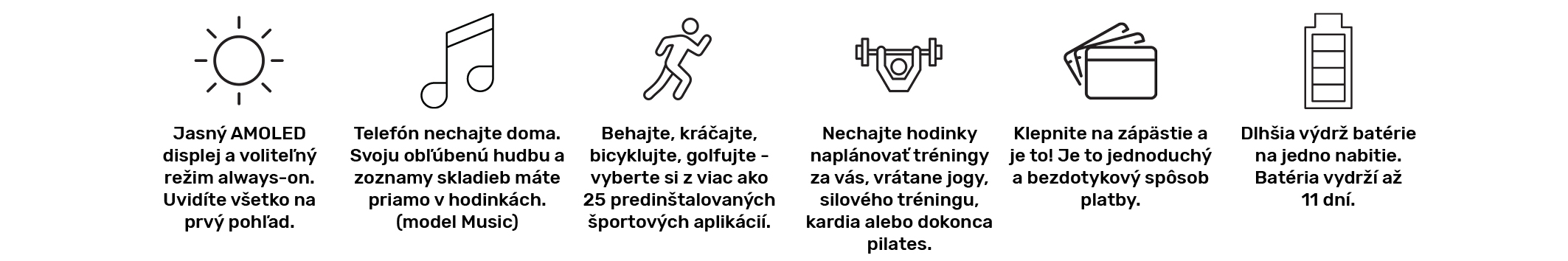 | Akumulátor - výdrž (pohotovostný režim): | až do 11 dní v režime smart hodiniek (24/7 monitorovanie pulzu, bez GPS), až do 26 hodín so zapnutým GPS |